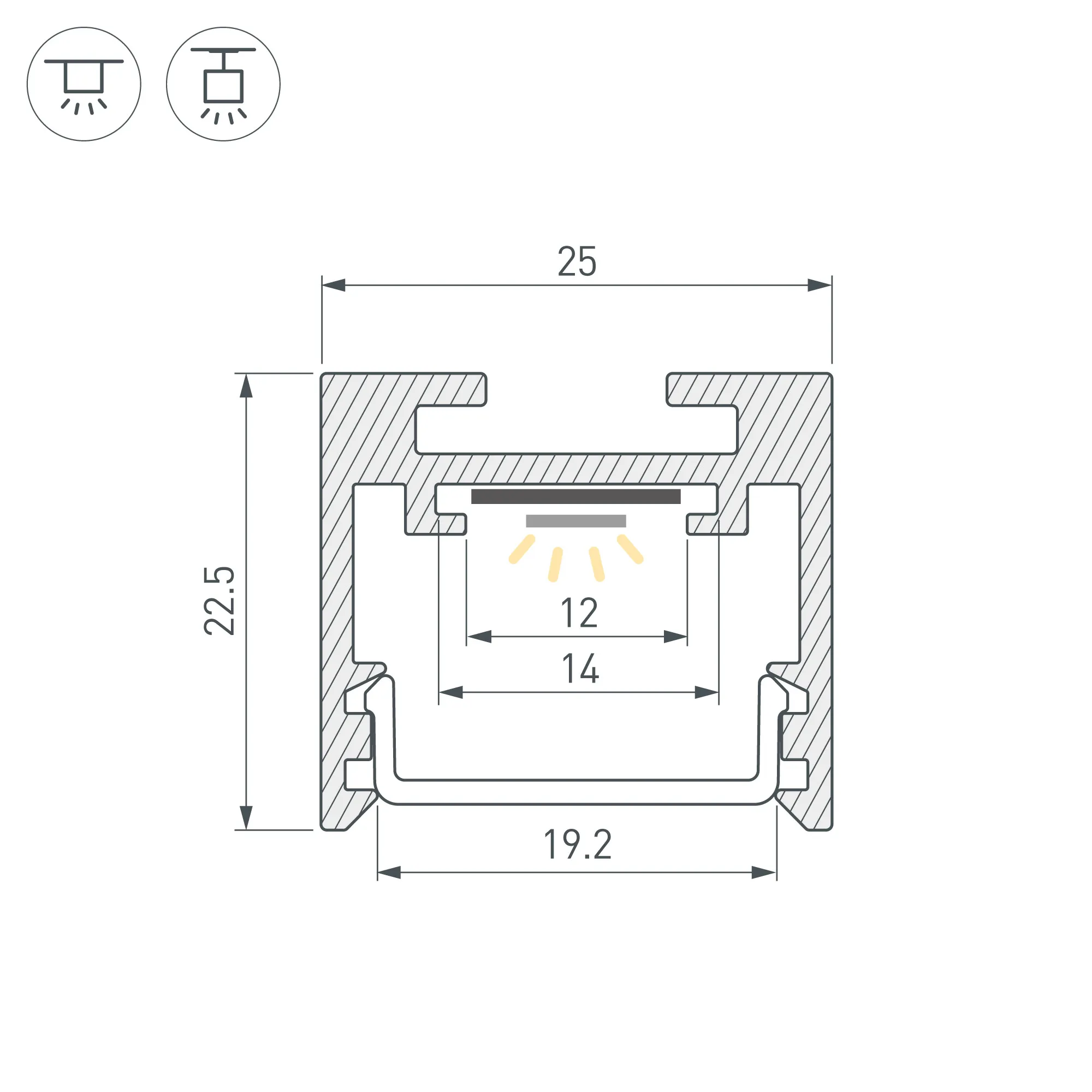 Алюминиевый профиль для светодиодных лент и линеек. Цвет - белый RAL9003 (порошковая окраска). Габаритные размеры (L×W×H): 2500x25x22 мм. Ширина площадки для ленты 12 мм. Экраны, заглушки и другие аксессуары приобретаются отдельно. Цена за 1 метр.