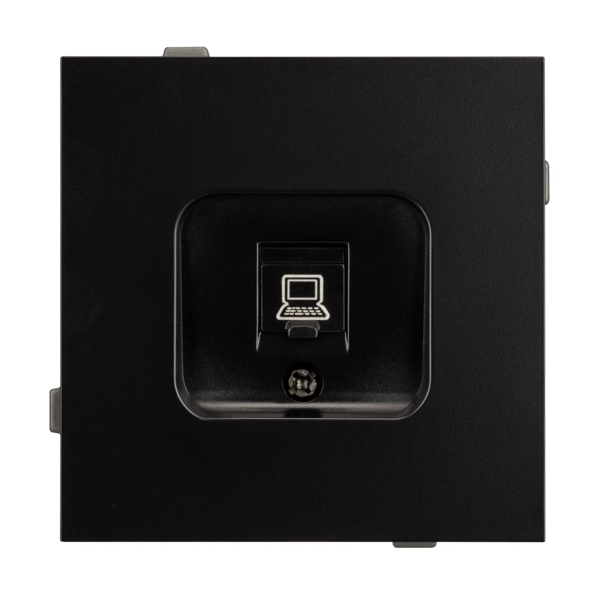 Механизм компьютерной розетки на 1 пост 6-й категории. Цвет - черный. Без фронтальной рамки. Уровень пылевлагозащиты IP20. Розетка устанавливается в стандартный подрозетник круглого сечения диаметром 60мм.