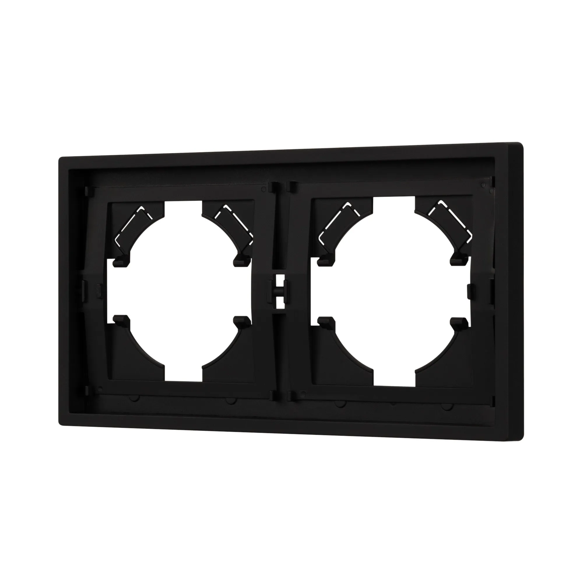 Рамка пластиковая на 2 поста, под встраиваемый механизм. Цвет - матовый черный, с Soft-Touch покрытием. Уровень герметичности IP20. Ориентация монтажа горизонтальная.